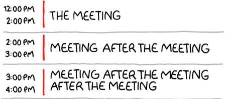 Sound familiar? After a meeting, people meet in twos and threes, in the parking lot or in the hallway, to “debrief” – but more likely, to complain or to voice unexpressed thoughts and feelings – to unload what they didn’t say in the meeting. In COVID times, they – we – may send a private chat to someone… just like in the “meeting after the meeting”.